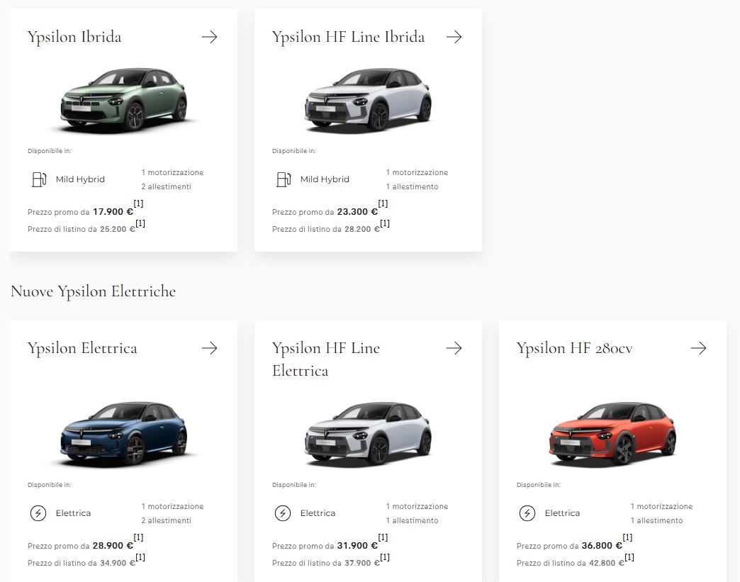 * Lancia Ypsilon Ibrida – Consumo di carburante: 4,6-4,5 l/100km – Emissioni di CO2: 104-102 g/km. Valori di omologazione determinati in base al ciclo combinato WLTP. Dati aggiornati a maggio 2025 e indicati a fini comparativi.